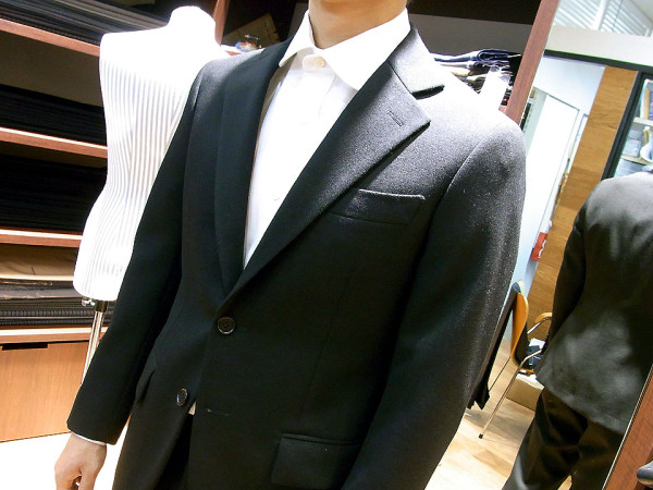 タッサー?いえいえ、もっと横畝の太い、ウールグログランのブラックフォーマルです。